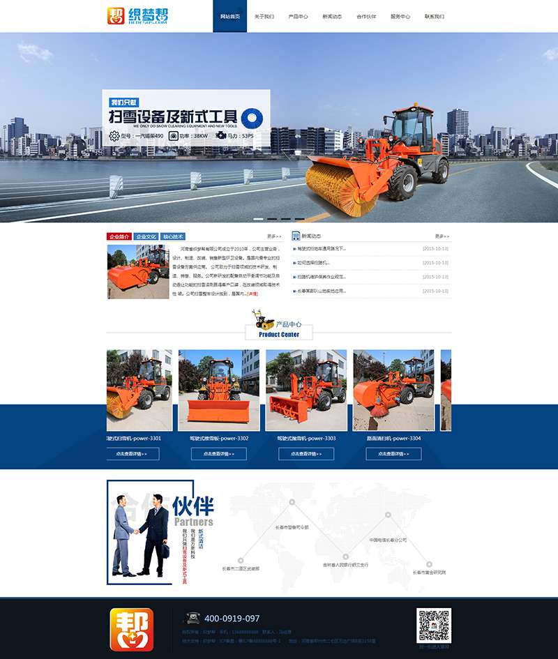 大气蓝色机械通用企业网站模板适合各类企业网站使用,只要根据自己的企业行业进行稍微的修改就能满足绝大多数企业的需求,首页的设备比较传统,上部分是关于我们,企业新闻版块,中间是一个带循环移动特效的产品展示,紧接着就是合作伙伴,设计也算是比较优秀的了,栏目页包含了关于我们,招聘,新闻中心,产品展示,联系我们这些个栏目,还有对应的内容页模板,如果您是想做一个企业网站那么这个模板还是非常值得推荐的,全部已数据调用,只需后台修改栏目名称即可。由作者提供免费安装服务,24小时随问随答,终身技术性指导。本模板基于DEDECms 5.7 UTF-8 设计, GBK 需要版本的请自己转换。