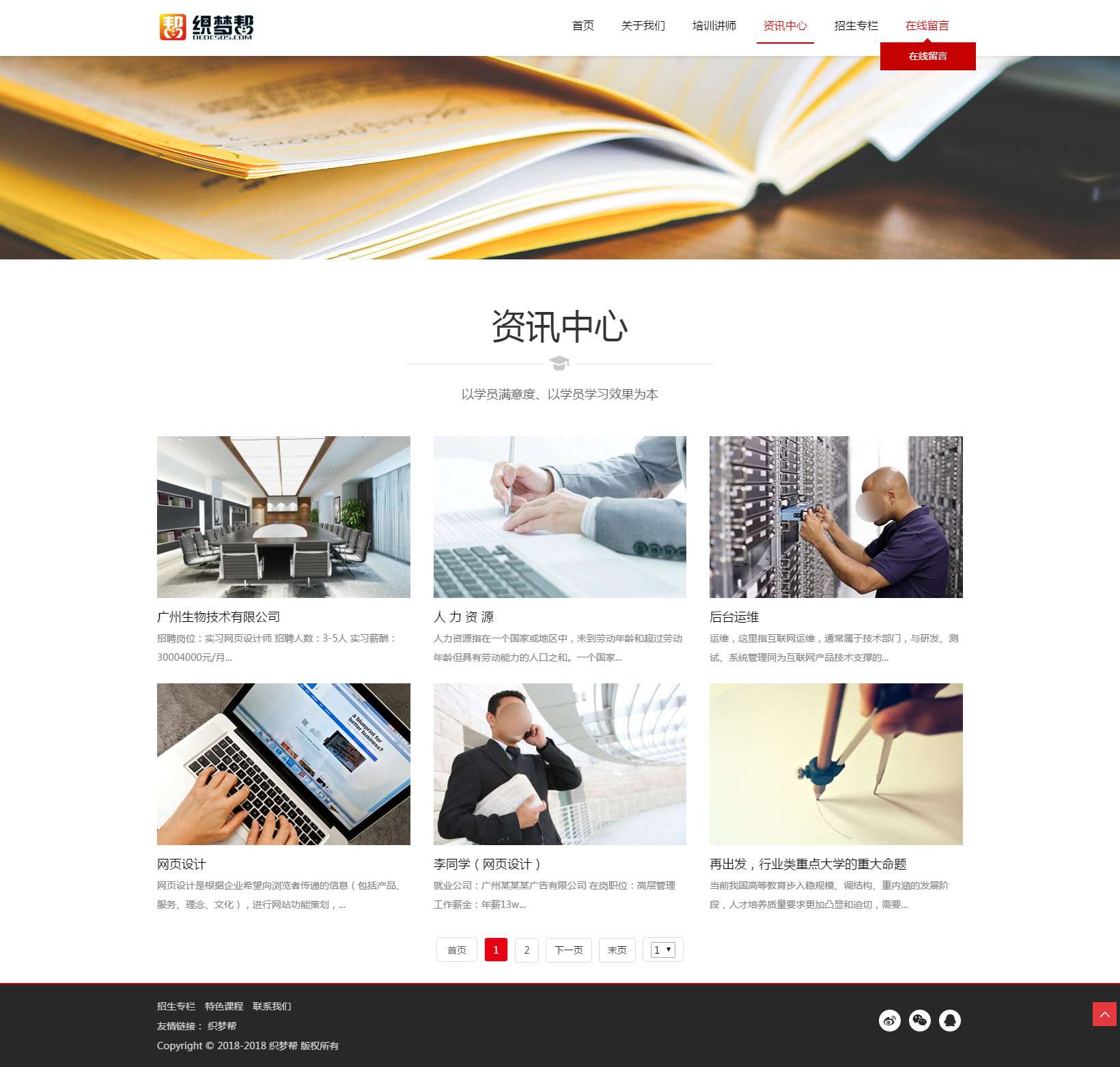 响应式大气培训学校教育类网站DEDE模板(自适应手机端),织梦最新内核开发的模板,该模板属于培训学校、教育、校园招生,不仅仅局限于一类型的企业,你只需要把图片和产品内容;换成你的,颜色都可以修改,改完让你耳目一新的感觉!!