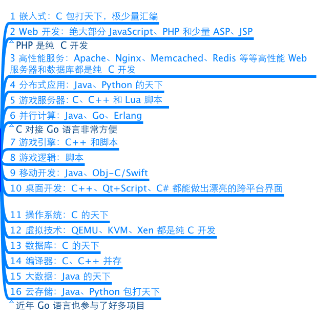 C语言的应用极其广泛,从网站后台,到底层操作系统,从多媒体应用到大型网络游戏,均可使用C语言来开发: