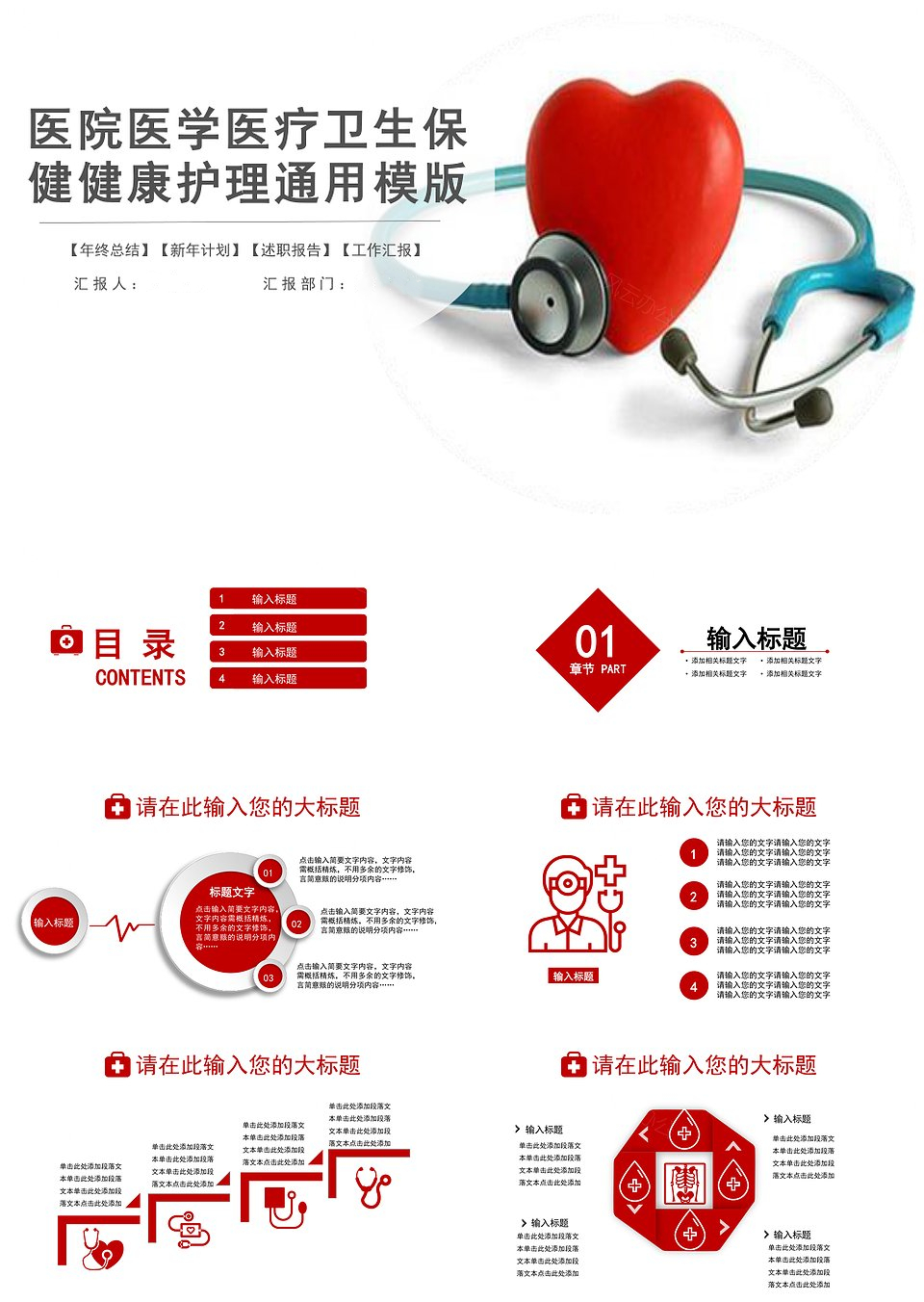 本作品内容为医学医院医疗健康保健卫生计划总结汇报通用PPT模板,请使用软件PowerPoint打开,作品中文字及图均可以修改和编辑,图片更改请在作品中右键图片并更换,文字修改请直接点击文字进行修改,也可以新增和删除作品中的内容,欢迎使用织梦帮PPT模板。