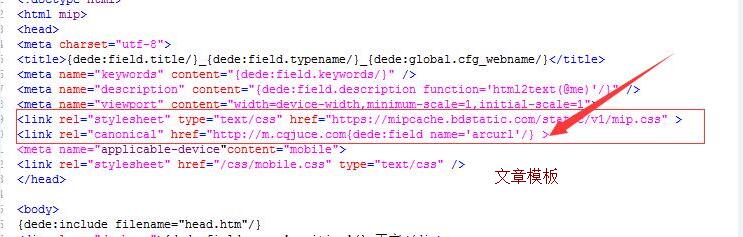 8、a标签替换:因mip改造必须是绝对路径,所以把所有a标签改成绝对路径,方法:在链接前加{dede:global.cfg_mip/}(在全局内使用)或[field:global.cfg_mip/](在{dede:arclist}内使用),例:<a target="_blank" href="[field:global.cfg_mip/][field:arcurl/]">