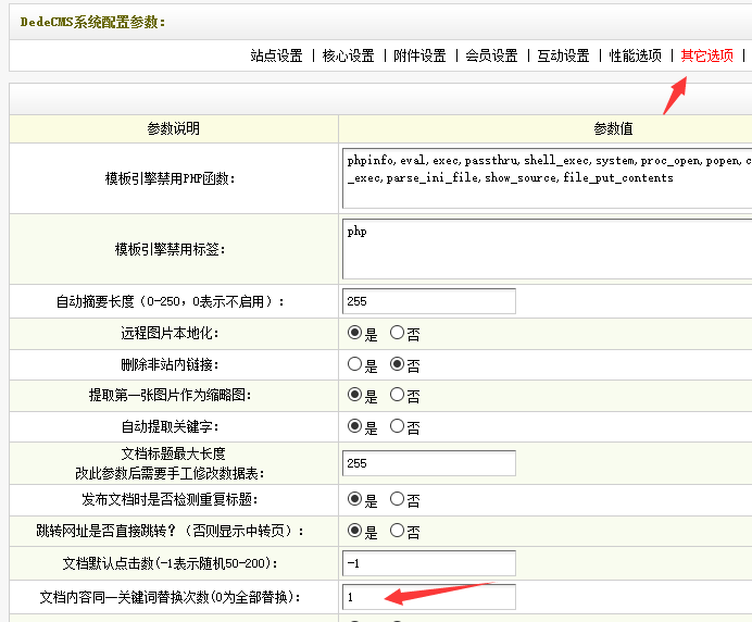 2、后台-系统-其他选项-关键词替换次数,填【1】或者【0】