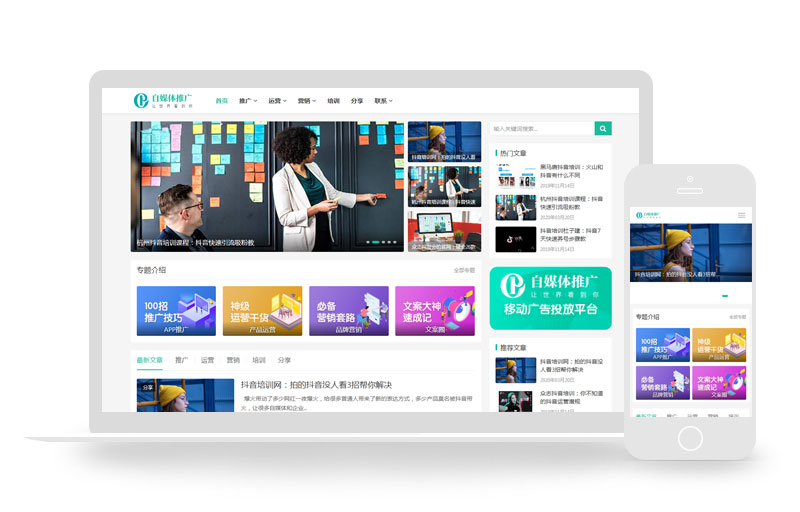 模板介绍 响应式自媒体运营培训教程类网站织梦模板(自适应手机端),dedecms织梦最新内核开发的模板,该模板属于HTML5响应式、自媒体运营、自媒体教程、自媒体培训类企业使用,一款适用性很强的模板,基本可以适合各行业的企业网站!响应式自适应各种移动设备,同一个后台,数据即时同步,简单适用!原创设计、手工书写DIV+CSS,完美兼容IE7+、Firefox、Chrome、360浏览器等;主流浏览器;页面简洁简单,容易管理,DEDE内核都可以使用;附带测试数据!...